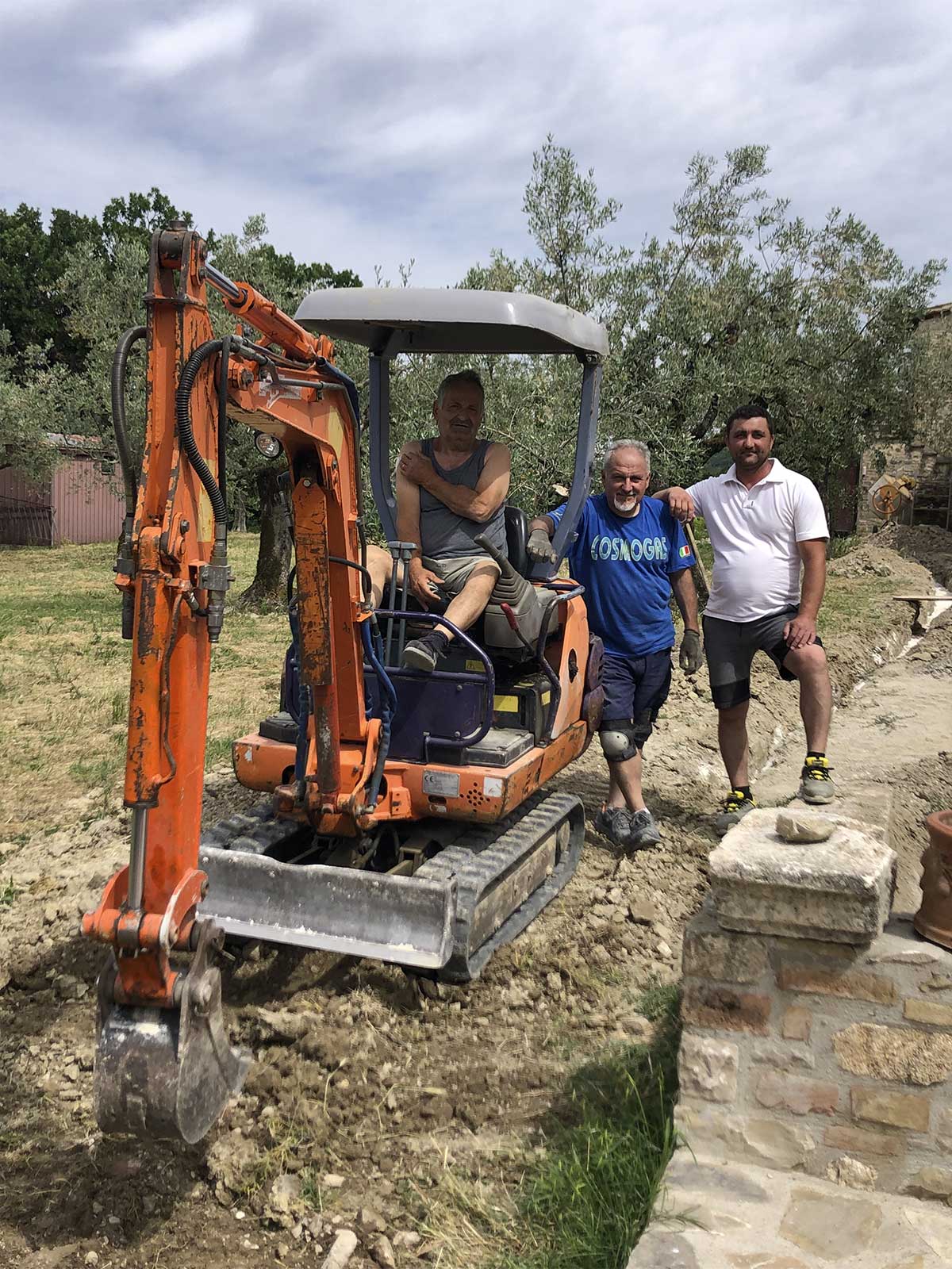 Giancarlo, Luca and Valentino while installing the rain water collection pipes.