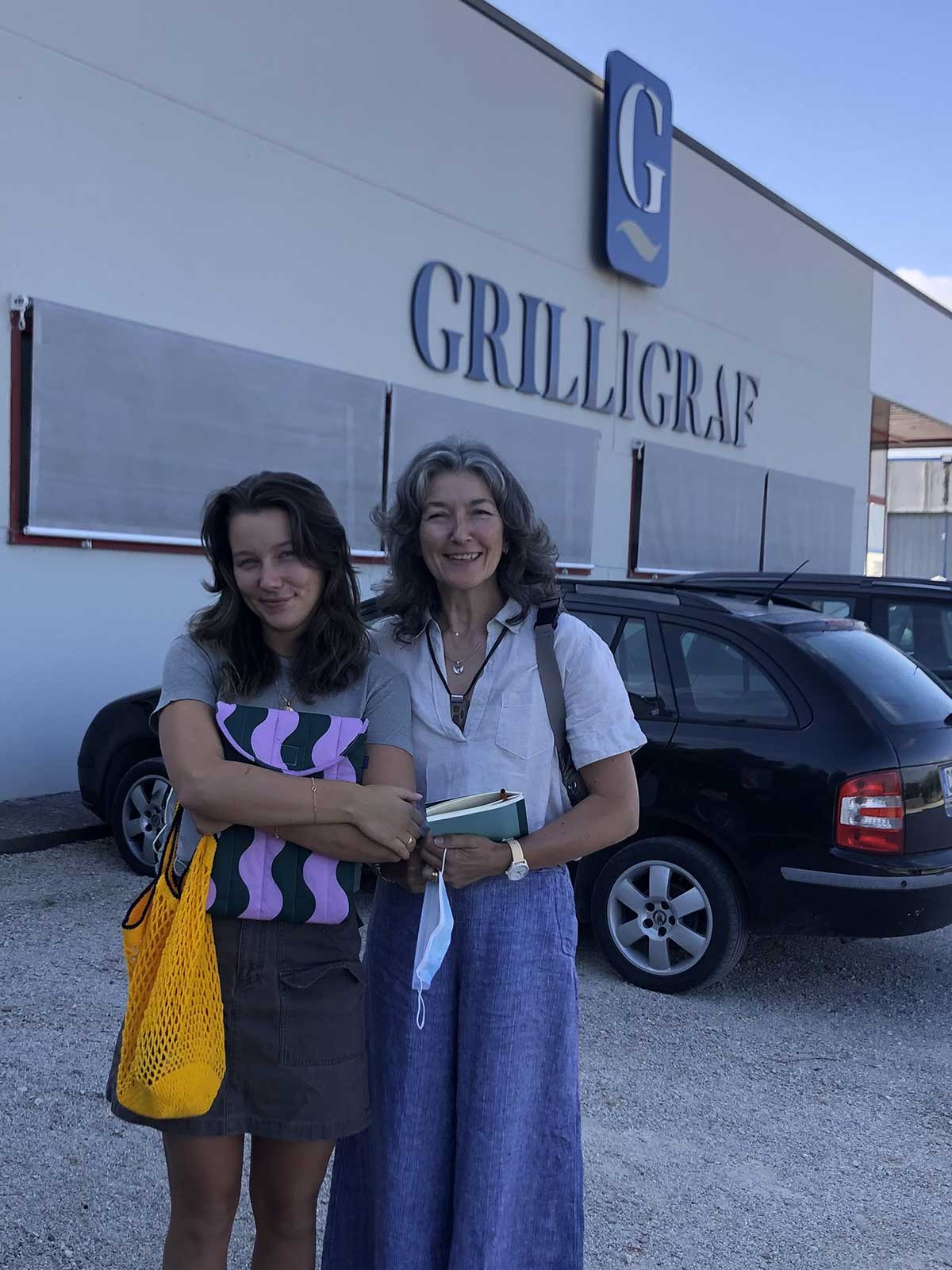 Laurence and Louise-Audrey at Grilligraf, our printing company for Le Clarisse leaflets and carton cases.